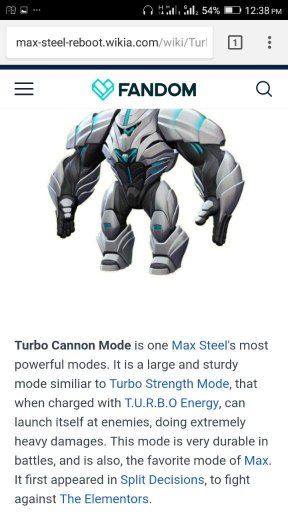 Stated to be max steel's strongest mode, it is the upgraded version of his turbo strength mode. Max steel belongs to mattel toys. Max steel first used turbo strength mode against fire elementor. Max has amazing speed, strength, reflexes, sight, and hearing. Max attempts to fight with the villain with his turbo strength mode, but he quickly take him down and tosses metal bars at them.
